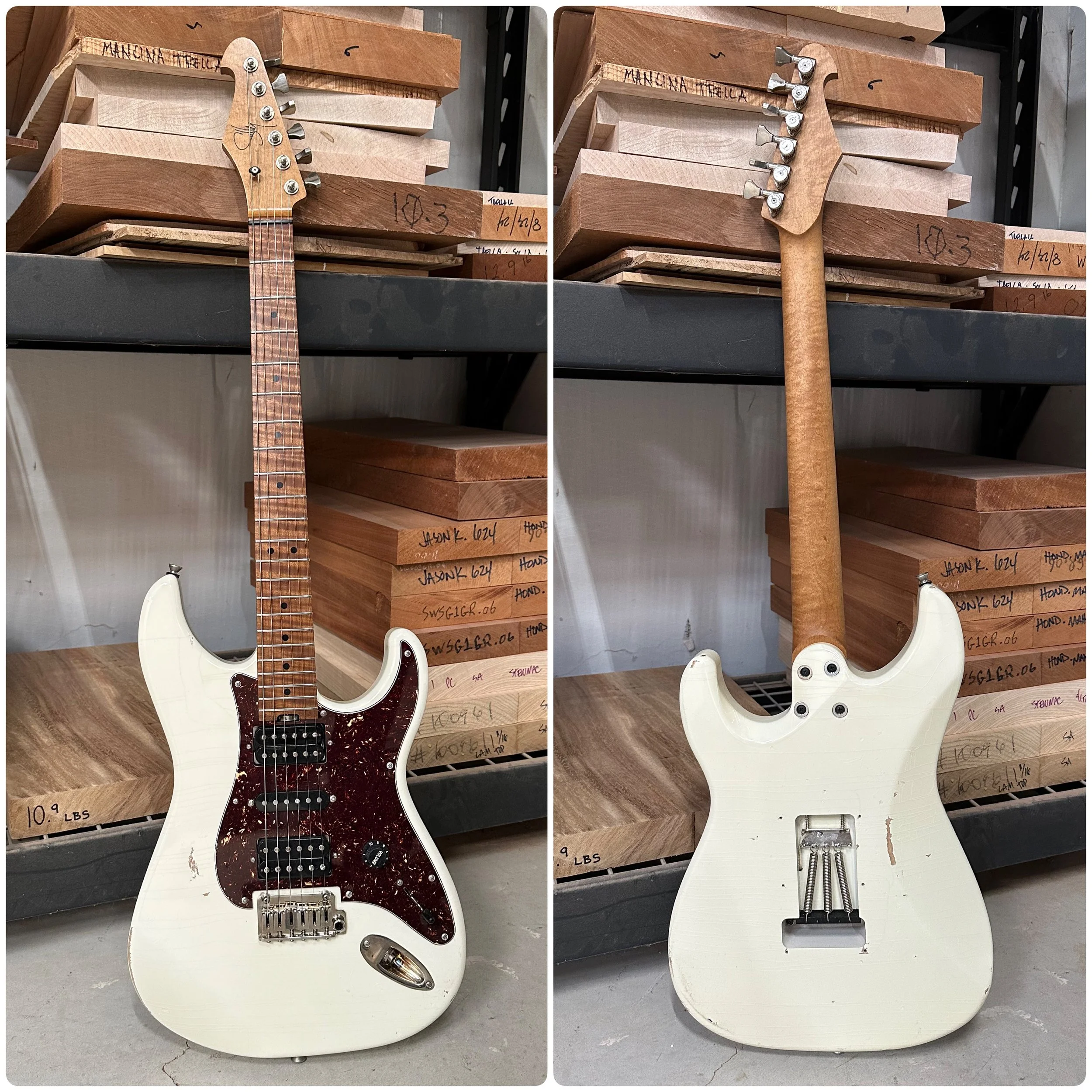 Finish: Olympic White nitrocellulose laquer “Sullied,” back of neck is oiled