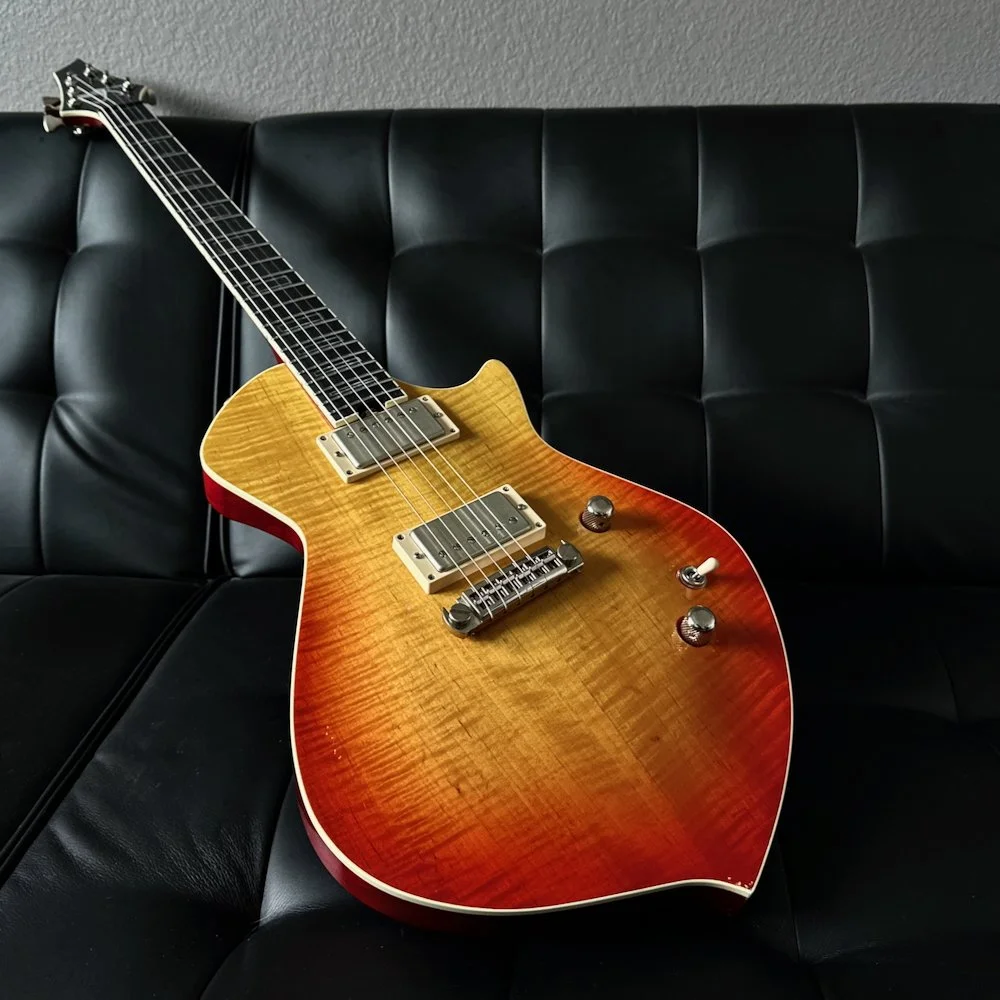 The manifestation of when you think of a ‘71 Trella with a cherry burst finish, our flagship model has been updated slightly with the addition of a spoke wheel truss rod with adjustment at the end of the fretboard. While that may add a bit of modernity to a traditionally finished instrument, we’re not beholden to almost 80 year old designs; we’re committed to improving the playing experience, even if if we want it to look a little old-timey.