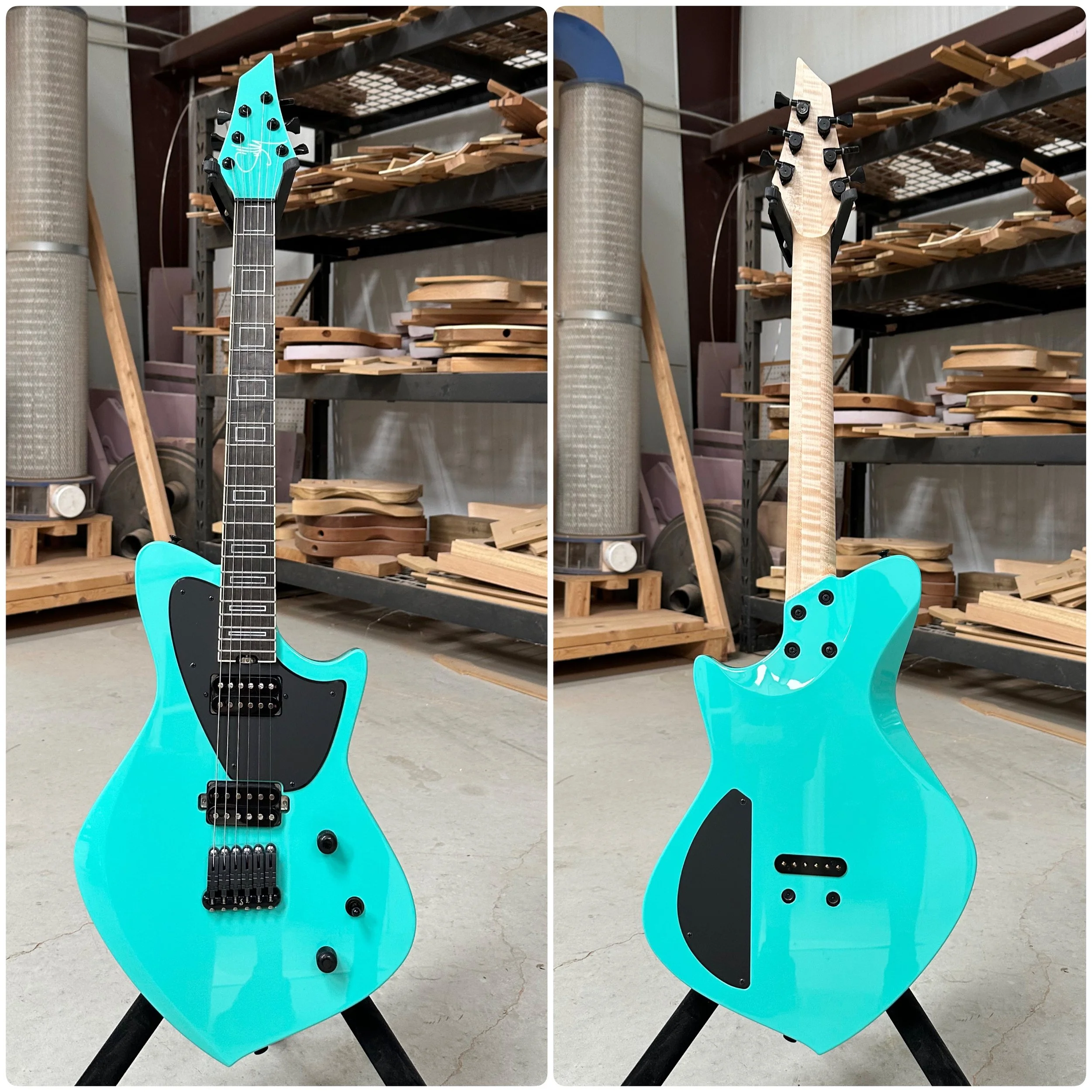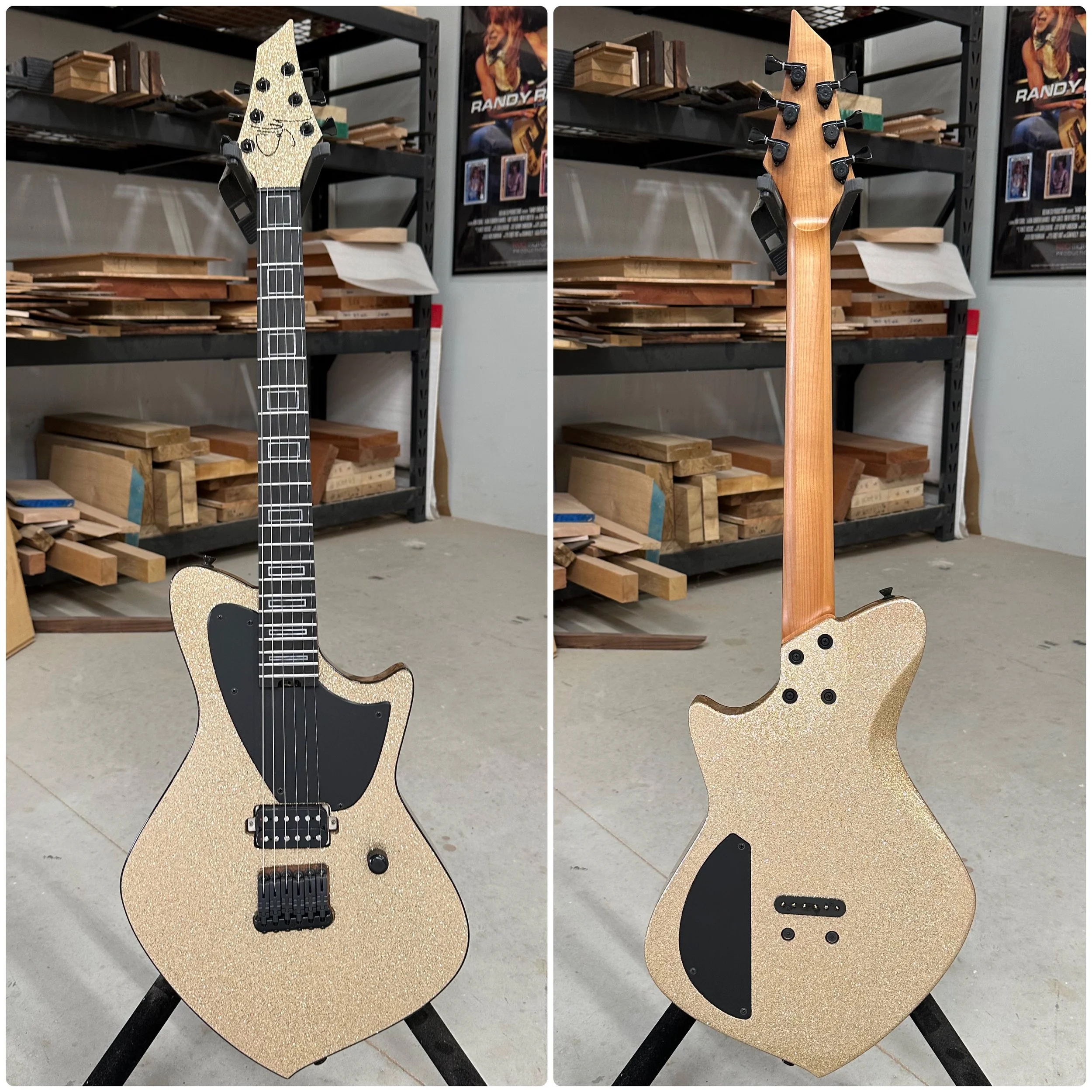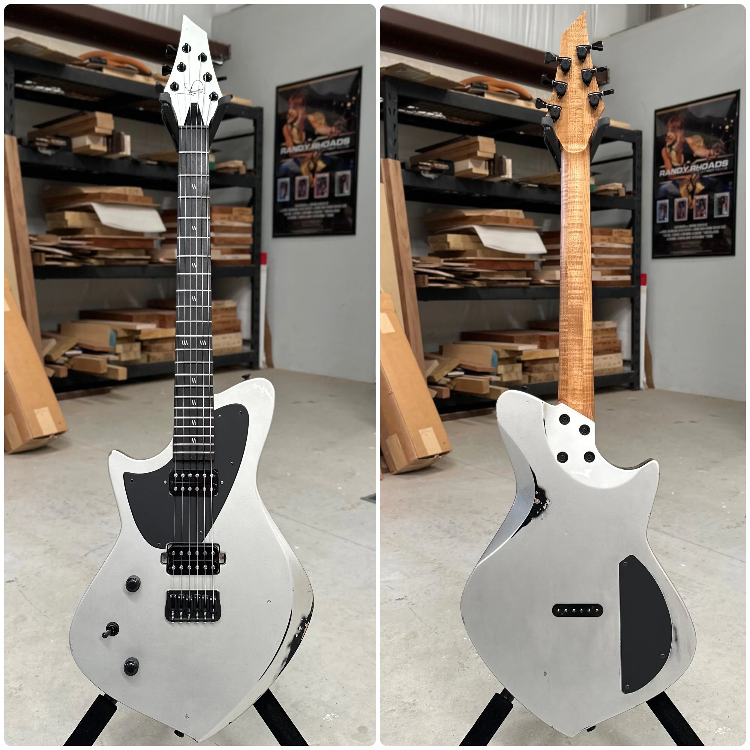 The Stardust® features bolt on construction, your choice of Aero, Raven, or Raven Traditional headstock, standard 25.5” scale, 22 or 24 stainless steel frets, and your choice of Hipshot hardtail or Floyd Rose locking tremolo. The Stardust is also available as a 7 string or baritone, and as with all Sully Guitars: no Bigsbys. For details on woods, electronics, and more options please see the order form below.