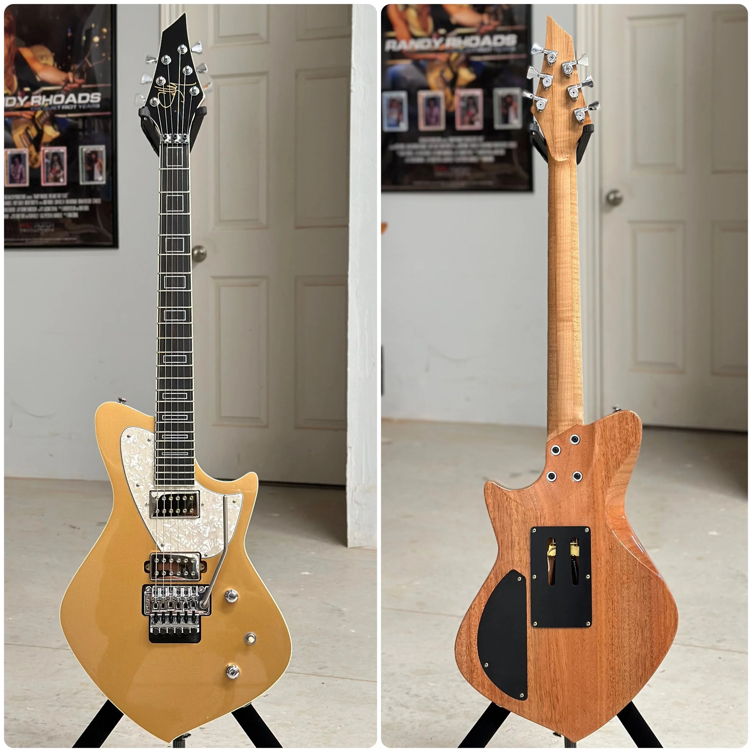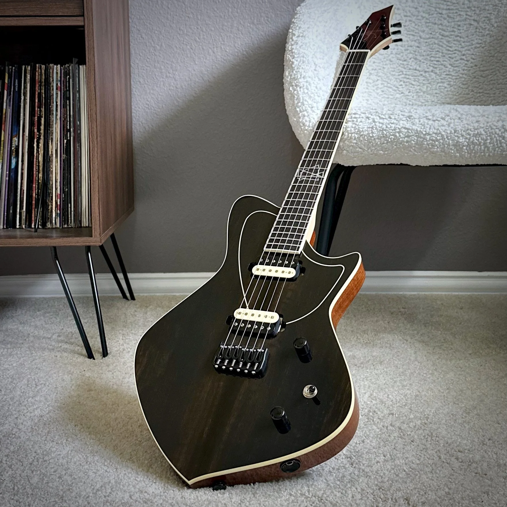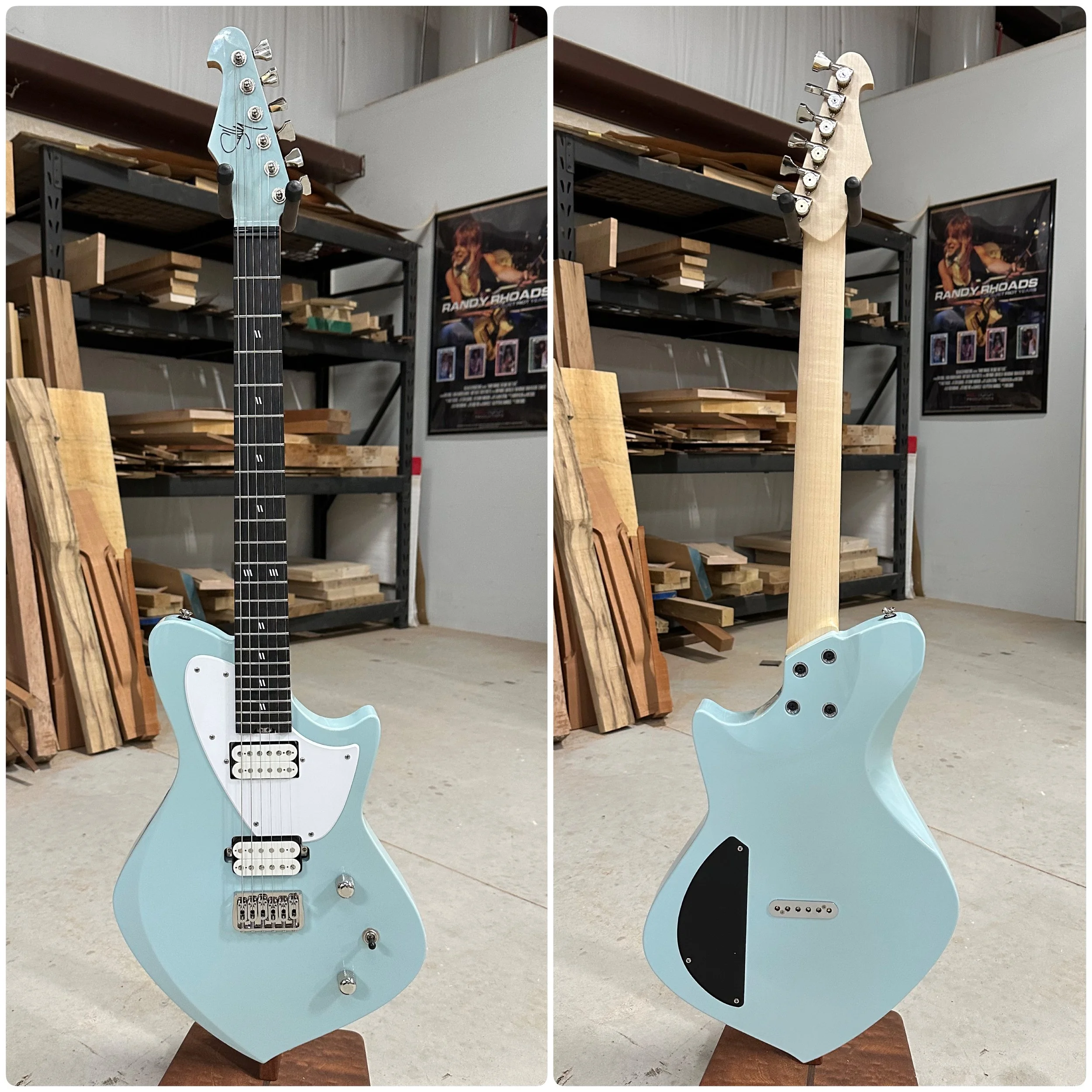The Stardust® features bolt on construction, your choice of Aero, Raven, or Raven Traditional headstock, standard 25.5” scale, 22 or 24 stainless steel frets, and your choice of Hipshot hardtail or Floyd Rose locking tremolo. The Stardust is also available as a 7 string or baritone, and as with all Sully Guitars: no Bigsbys. For details on woods, electronics, and more options please see the order form below.
